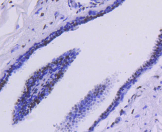 Immunohistochemical analysis of paraffin-embedded human breast carcinoma tissue using anti-HDAC2 antibody. Counter stained with hematoxylin.
