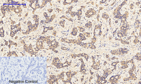 Immunohistochemical analysis of paraffin-embedded Human-liver-cancer tissue. 1,JAK1 (phospho Tyr1034) Polyclonal Antibody was diluted at 1:200(4°C,overnight). 2, Sodium citrate pH 6.0 was used for antibody retrieval(>98°C,20min). 3,Secondary antibody was diluted at 1:200(room tempeRature, 30min). Negative control was used by secondary antibody only.