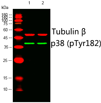特异性The antibody detects endogenous level of P38MAPK only when phosphorylated at tyrosine 182.