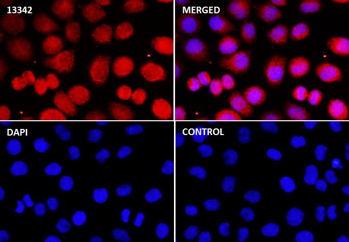 Samples were incubated with 13342 at a working dilution of 1/100. The secondary antibody was Alexa Fluor® 647 goat anti rabbit;used at a dilution of 1/500.
