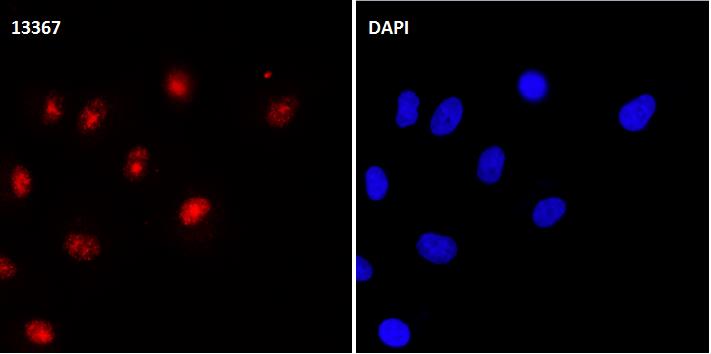 Samples were incubated with 13367 at a working dilution of 1/100. The secondary antibody was Alexa Fluor® 647 goat anti rabbit;used at a dilution of 1/500.