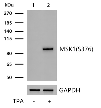 免疫原描述Synthetic phospho-peptide corresponding to residues surrounding Ser376 of human MSK1.