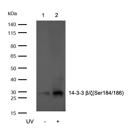 特异性Phospho-14-3-3 β/ζ (S184/186) Polyclonal Antibody detects endogenous levels of 14-3-3 β/ζ protein only when phosphorylated at S184/186.