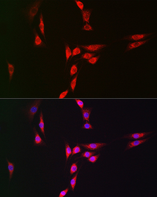Immunofluorescence analysis of NIH-3T3 cells using NFKB1 Rabbit pAb.
