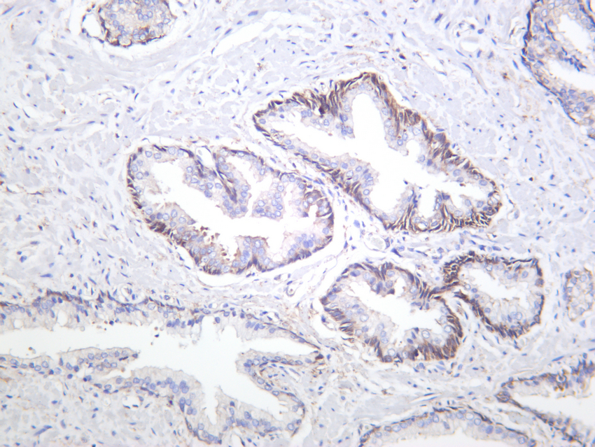 Immunohistochemical analysis of Human prostate carcinoma was stained with anti-NF-κB1 p105/p50 rabbit antibody.