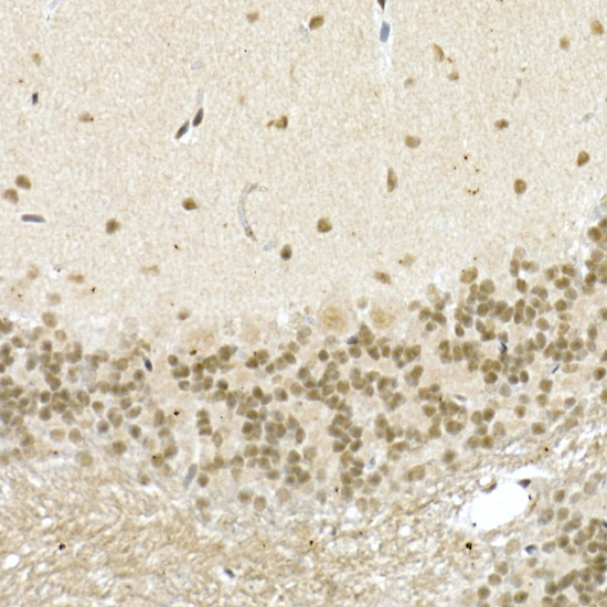 Immunohistochemistry analysis of paraffin-embedded Mouse brain using CREB Antibody at dilution of 1:50 (40x lens).