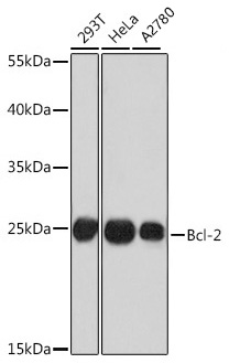 Western blot analysis of extracts from 293T, Hela and A2780 cells using BCL-2 Antibody.