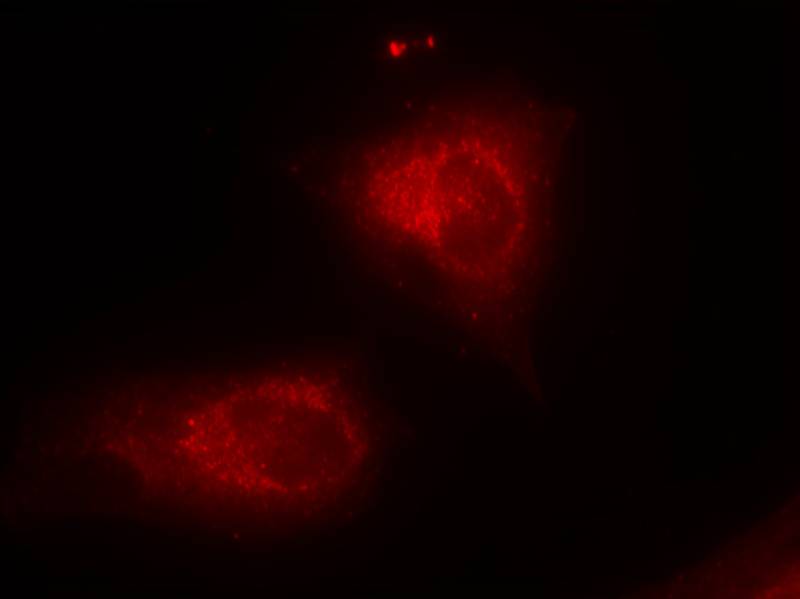 Immunofluorescence staining of methanol-fixed Hela cells using IkB-a Antibody.