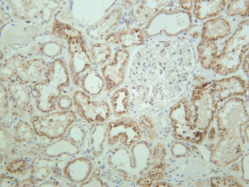Immunohistochemical analysis of paraffin-embedded Human kidney tissue using IkB-a Antibody.