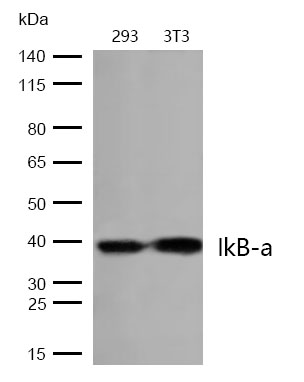Western blot analysis of extracts from 293 and 3T3 cells using IkB-a Antibody.