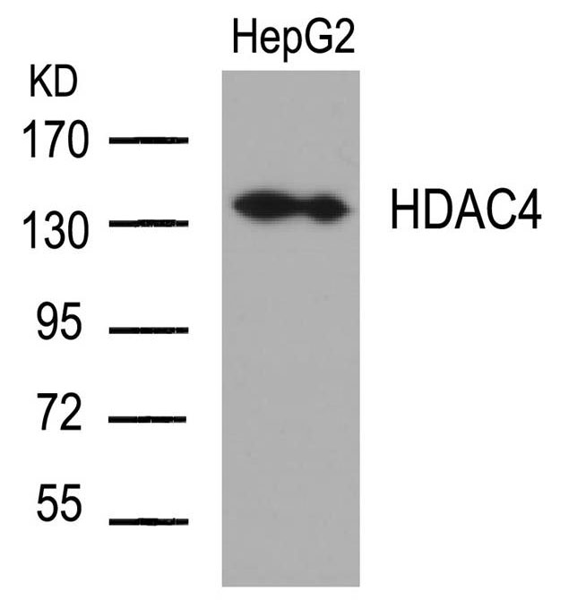 Western blot analysis of extracts from HepG2 cells using HDAC4 antibody.