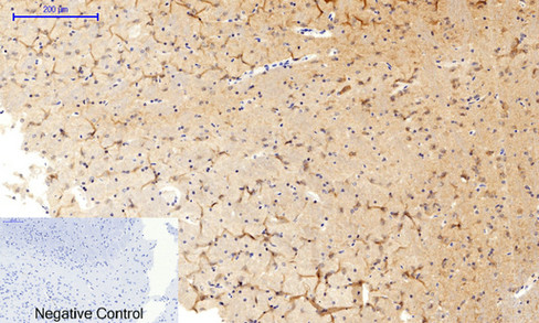 Immunohistochemical analysis of paraffin-embedded Rat brain tissue using MEK1/MEK2 Antibody.Negative control was used by secondary antibody only.