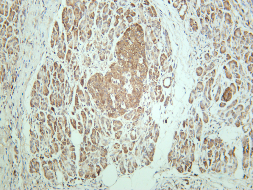 Immunohistochemical analysis of paraffin-embedded Human pancreas tissue using IRS-1 Antibody.