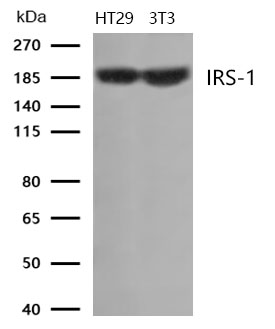 Western blot analysis of extracts from HT29 and 3T3 cells using IRS-1 Antibody.