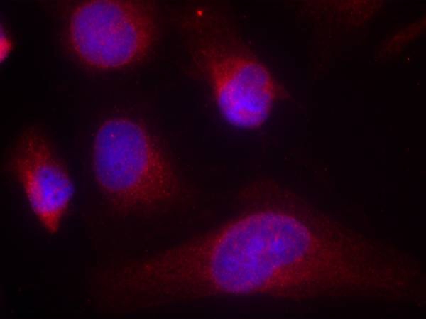 Immunofluorescence staining of methanol-fixed Hela cells using PKR(Ab-446) Antibody #21272.