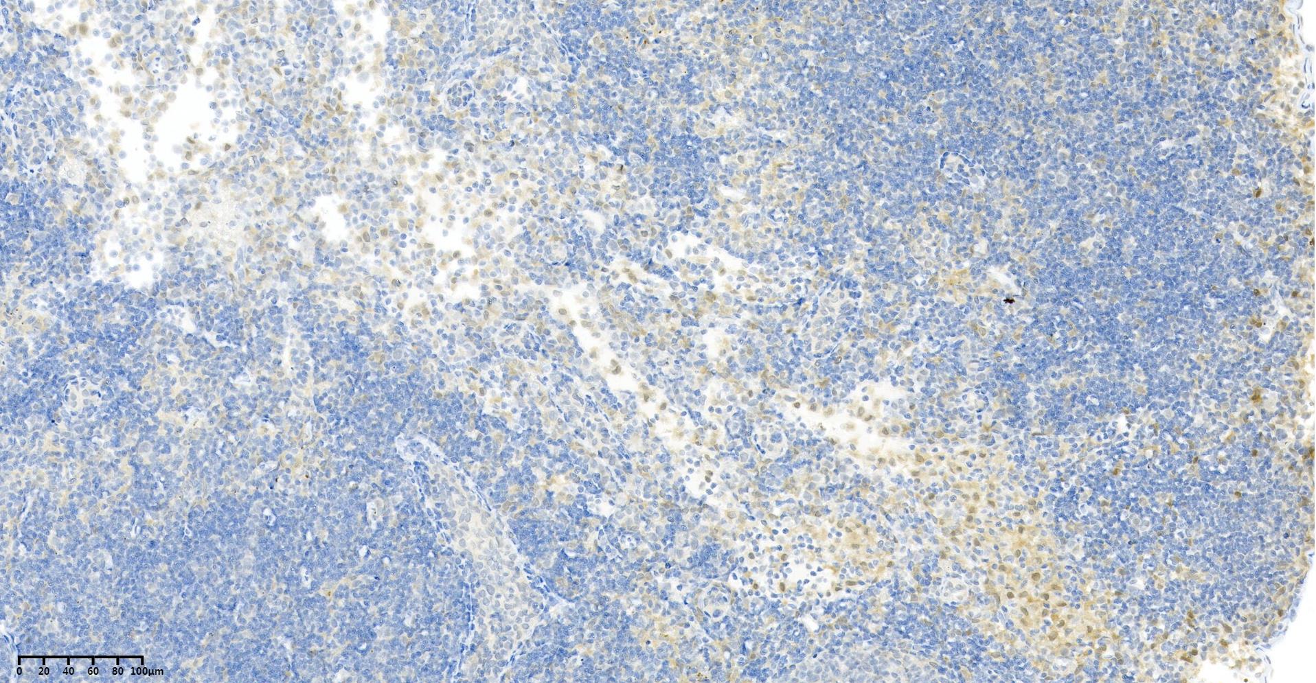 Immunohistochemistry analysis of paraffin-embedded Rat Mesenteric lymph nodes using P38 MAPK Antibody.