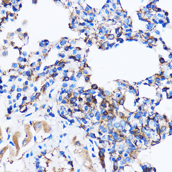 Immunohistochemistry analysis of paraffin-embedded Rat lung tissue using P38 MAPK Antibody.