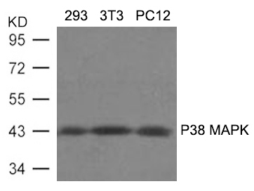 Western blot analysis of extracts from 293, 3T3 and PC12 cells using P38 MAPK Antibody.