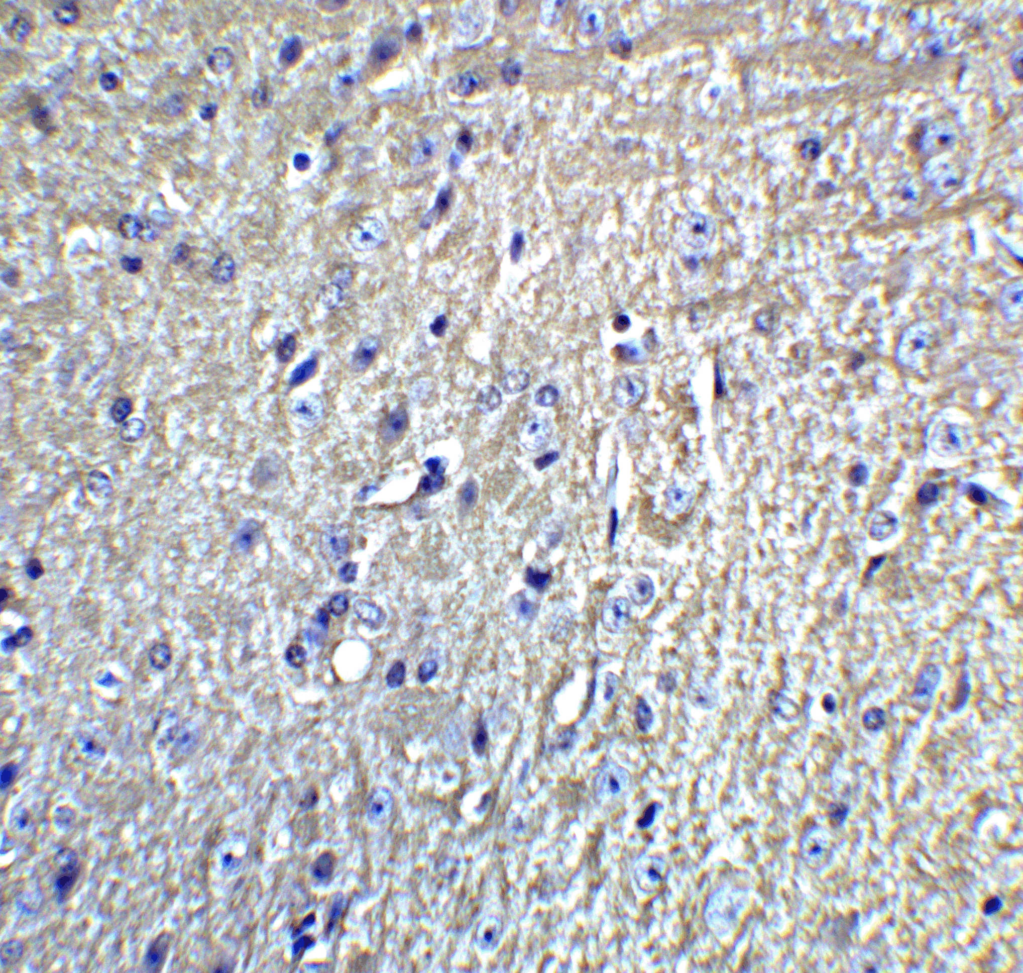 Immunohistochemistry of Grik1 in mouse brain tissue with Grik1 Antibodyat 5 μg/mL.