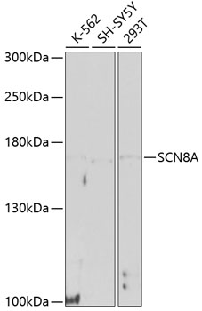 Western blot analysis of extracts of various cell lines, using SCN8A antibody.