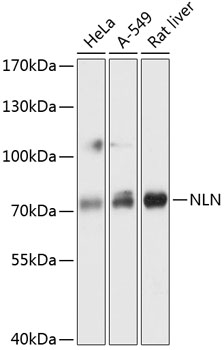 Western blot analysis of extracts of various cell lines, using NLN antibody.