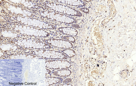 Immunohistochemical analysis of paraffin-embedded Human colon tissue using Cleaved Caspase-3 antibody.