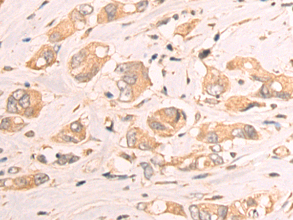Immunohistochemical analysis of paraffin-embedded Human breast cancer tissue using Cleaved Caspase-3 antibody.