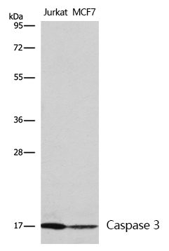 特异性Caspase 3 (p17,Cleaved-Asp175) Antibody detects endogenous levels of fragment of activated Caspase 3 resulting from cleavage adjacent to Asp175.
