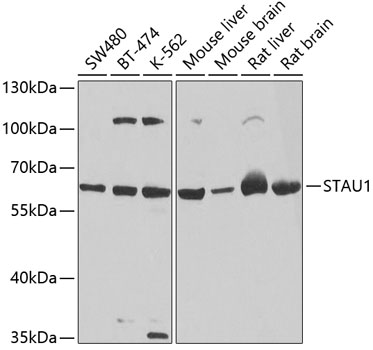 免疫原描述Recombinant fusion protein of human STAU1 (NP_059347.2).