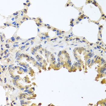 Immunohistochemistry of paraffin-embedded mouse lung using Bax antibody at dilution of 1:100 (40x lens).