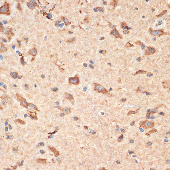 Immunohistochemistry of paraffin-embedded Mouse spinal cord using Bax antibody at dilution of 1:100 (40x lens).