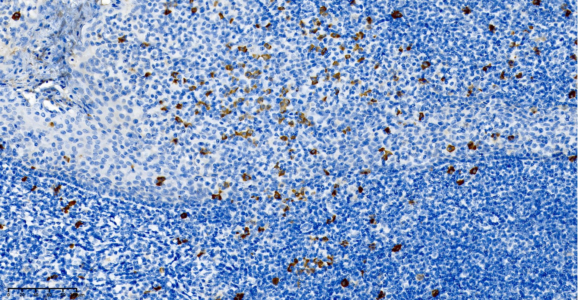 Immunohistochemistry of paraffin-embedded Human tonsils using Bax antibody .
