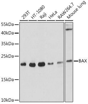 Western blot analysis of extracts from various cell lines using BAX antibody