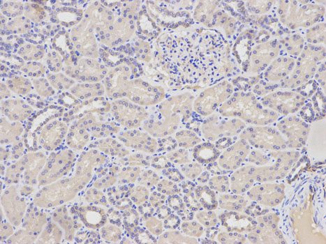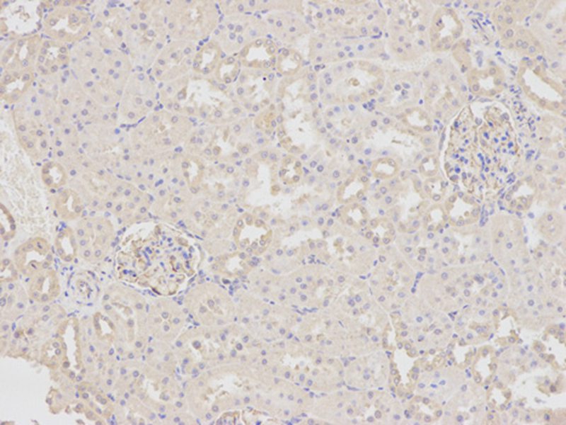 Immunohistochemical analysis of paraffin-embedded rat kidney using FABP4 antibody at dilution of 1:200 (200x lens).