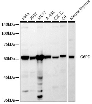 特异性The antibody detects endogenous level of total G6PD protein.