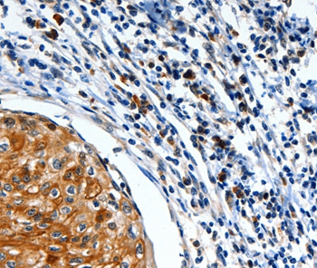 Immunohistochemical analysis of paraffin-embedded Human thyroid cancer tissue using FoxO1 Polyclonal Antibody.