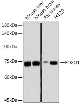 Western Blot analysis of extracts from various cell lines using FoxO1 Polyclonal Antibody.