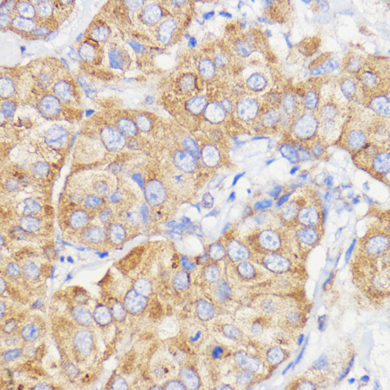 Immunohistochemistry of paraffin-embedded Human breast cancer using COL2A1 Rabbit pAb.