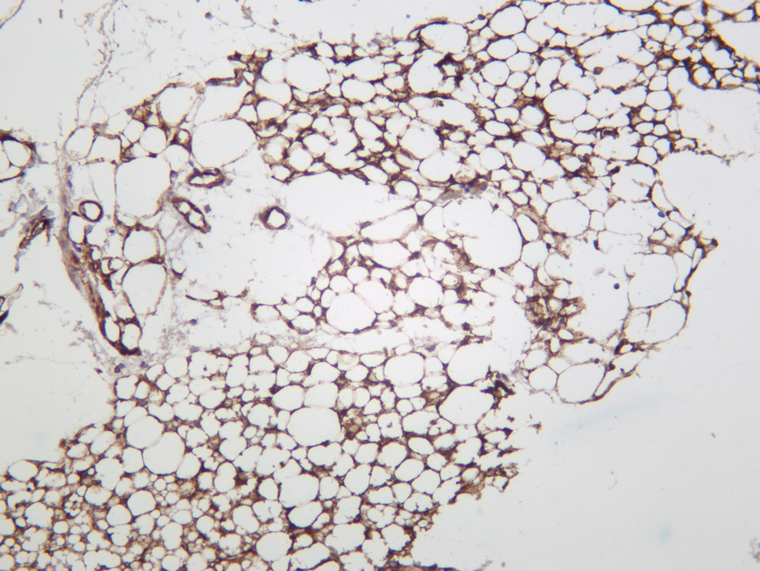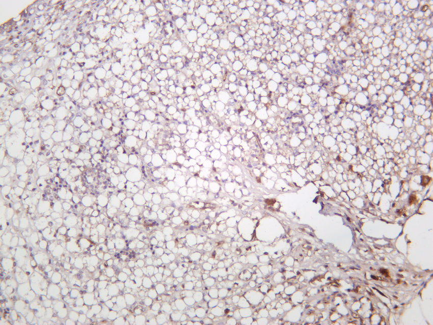 Immunohistochemistry of paraffin-embedded Rat adipose tissue using Adiponectin Polyclonal Antibody.