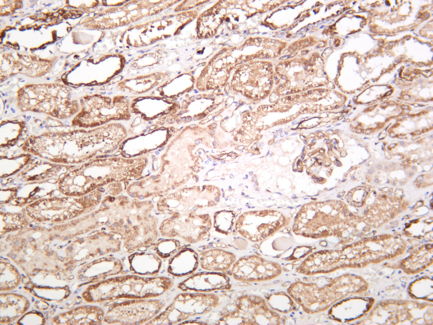 Immunohistochemistry of paraffin-embedded Human kidney tissue using Adiponectin Polyclonal Antibody.