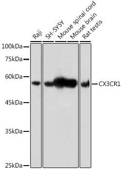 特异性The antibody detects endogenous level of total CX3CR1 protein.
