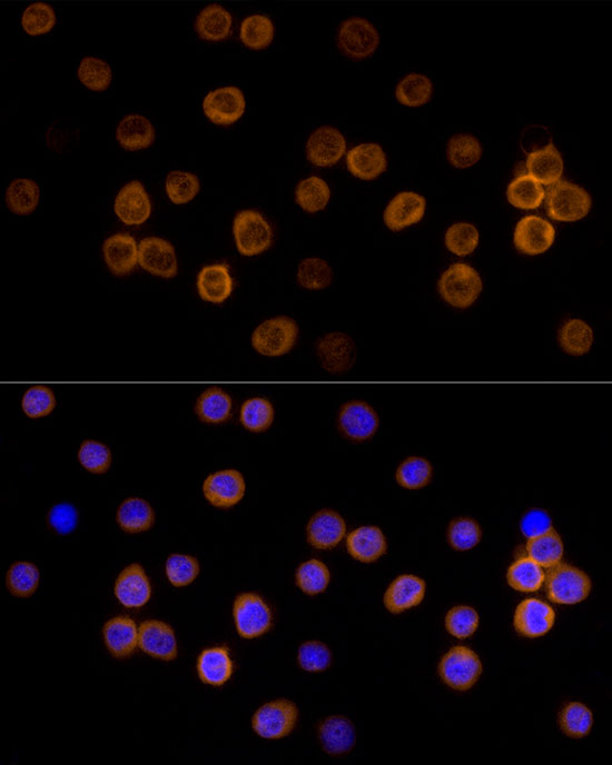 Immunofluorescence analysis of THP-1 cells using CX3CR1 Rabbit pAb.
