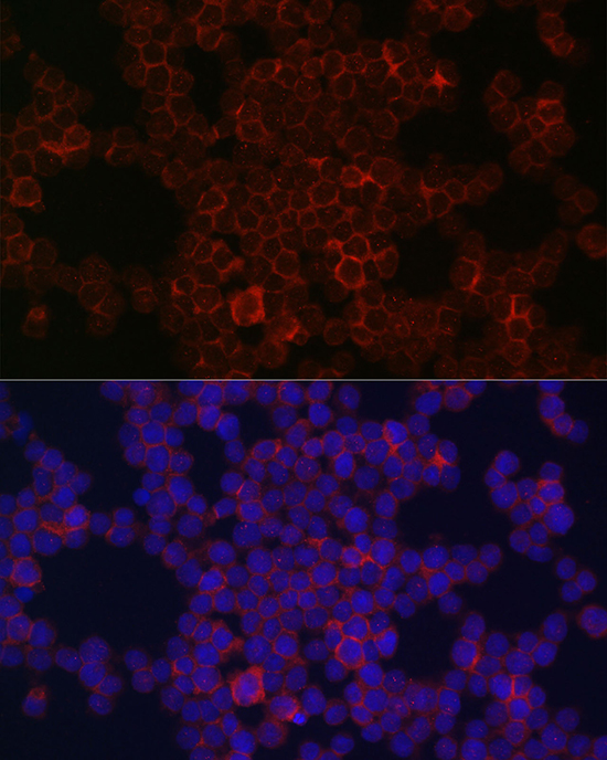 Immunofluorescence analysis of THP-1 cells using CSF1R Rabbit pAb.