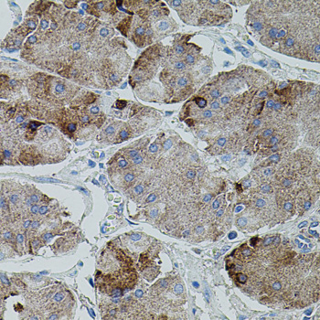Immunohistochemistry of paraffin-embedded human stomach using APP antibody.