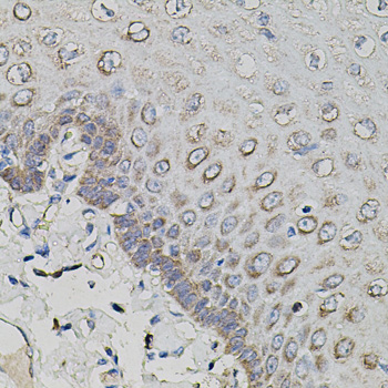 Immunohistochemistry of paraffin-embedded human esophagus using APP antibody.