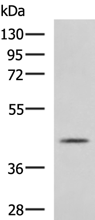 Gel: 8%SDS-PAGE, Lysate: 40 μg, Lane: Mouse heart tissue lysate, Primary antibody:PRELP Antibody at dilution 1/900, Secondary antibody: Goat anti rabbit IgG at 1/5000 dilution, Exposure time: 1 minute