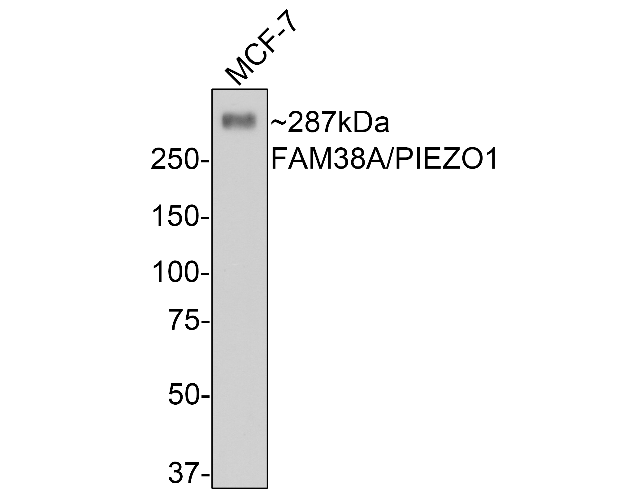 Western blot analysis of FAM38A on MCF-7 cell lysates with Mouse anti-FAM38A antibody at 1/500 dilution.