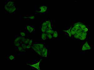 Immunofluorescence analysis of methanol-fixed Hela cells (green) using Bcl-2 Antibody.