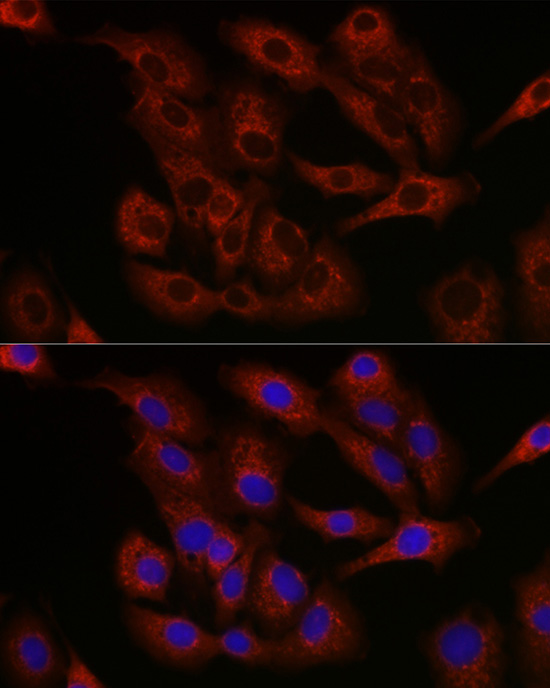 Immunofluorescence analysis of methanol-fixed A549 cells using Bcl-2 Antibody.