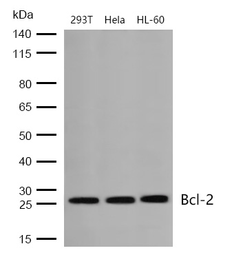 Western blot analysis of extracts from 293T, Hela and HL-60 cells using BCL-2 Antibody.
